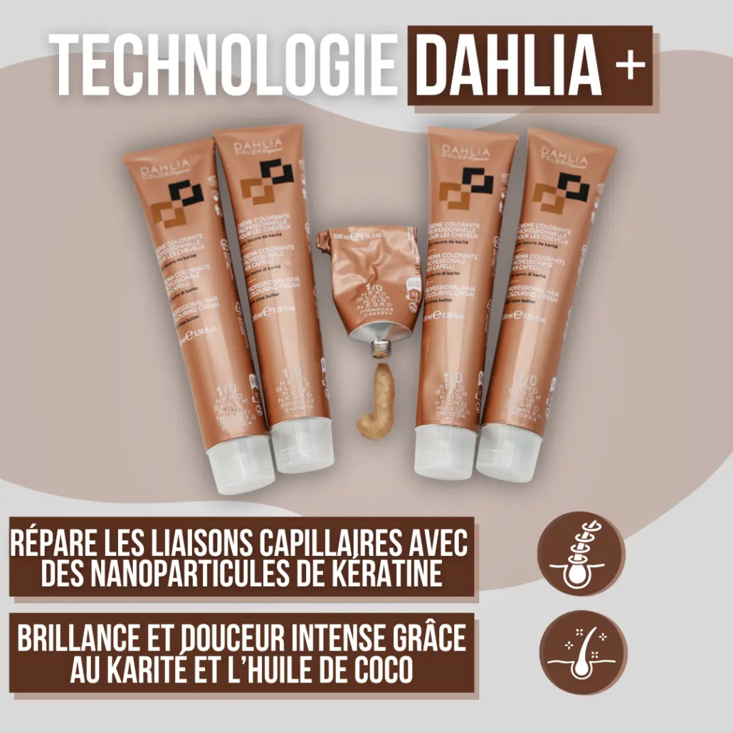 Découvrez la Crème Colorante avec Ammoniaque 100ml de DAHLIA, enrichie de nanoparticules de kératine, beurre de karité et huile de coco—le choix qualité/prix idéal pour un produit coiffant professionnel abordable. Dahlia Color Professionnel